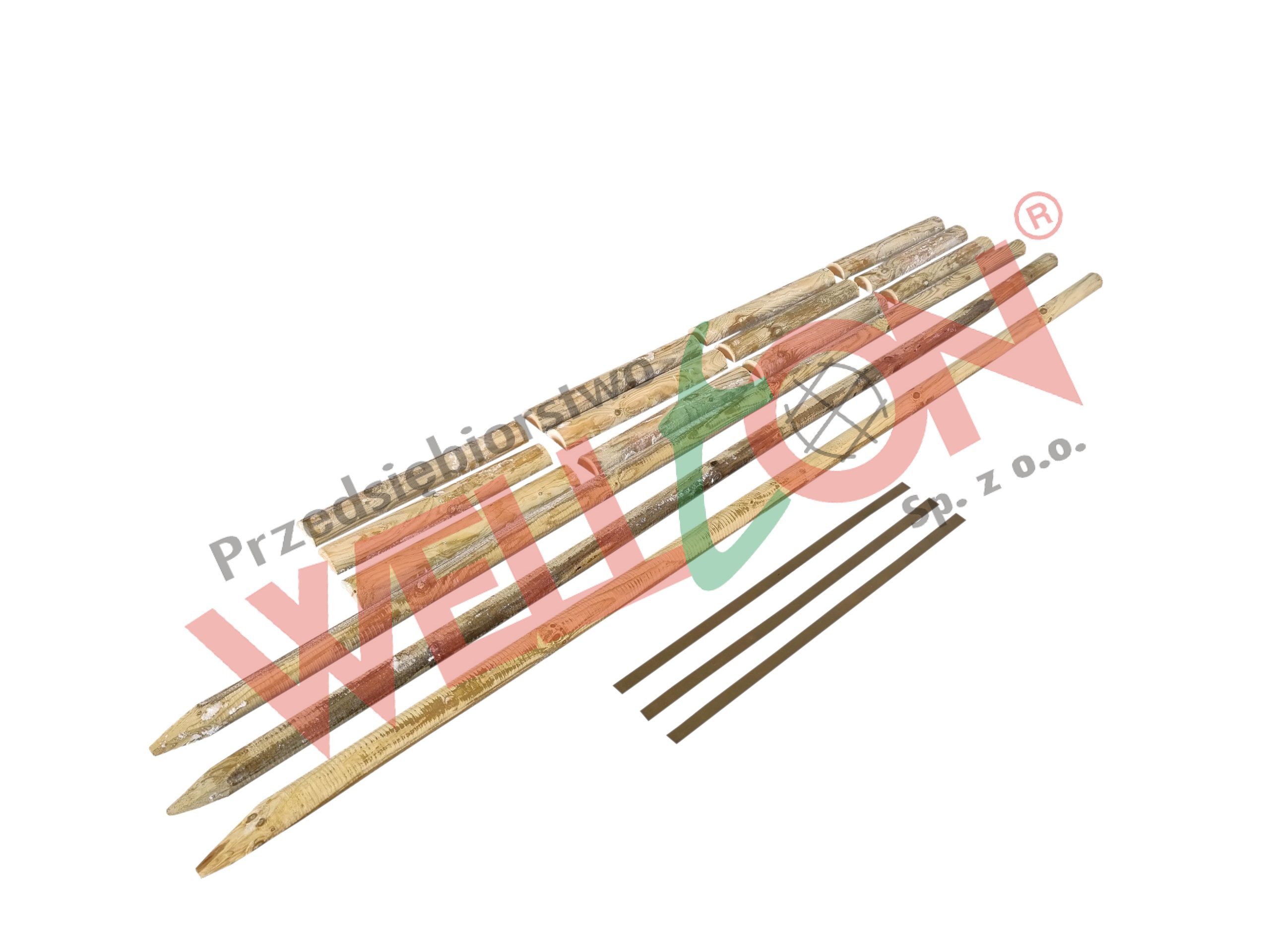 - 3 round poles with beveled/sharp ends ↔ dimensions 6 x 250 cm,
