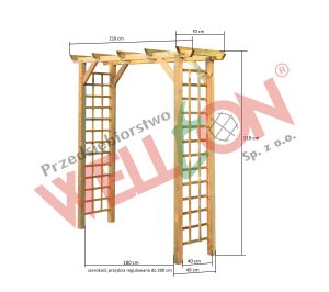 Szerokość przejścia pergoli jest regulowana maksymalnie do 200 cm.