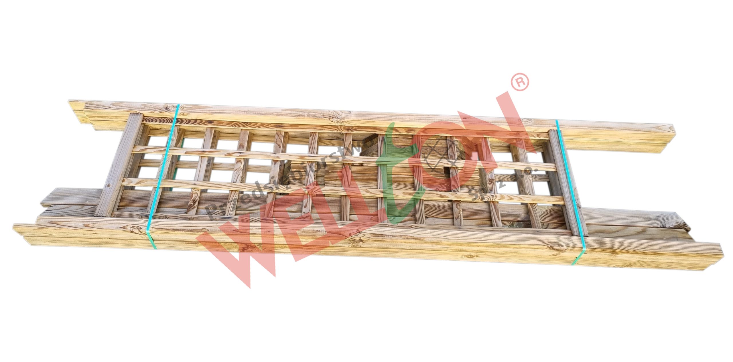 Produkt w naturalnym kolorze drewna, niemalowany. Aby zachować estetyczny wygląd drewna, zalecamy regularne malowanie powierzchni impregnatem do drewna co dwa lata.